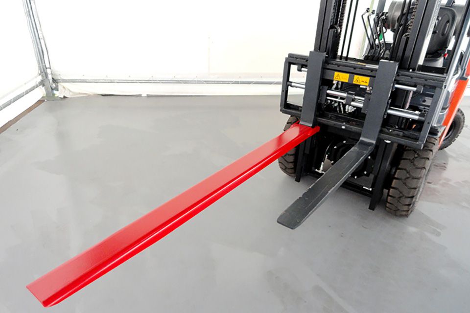 Крепятся на вилы погрузчика, удлиняя их на 40-60%. Если вы приобрели удлинители, например, 2 метра, это будет окончательной рабочей длиной. Когда оператор закончит работать с нестандартным грузом, ему придётся ехать к месту демонтажа навесного оборудования и снимать удлинители, чтобы можно было перевозить паллеты стандартного размера.